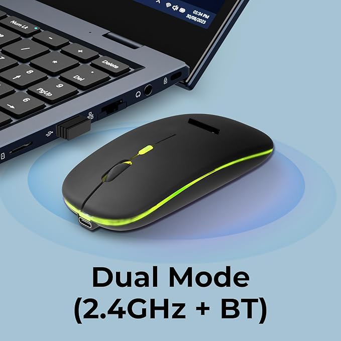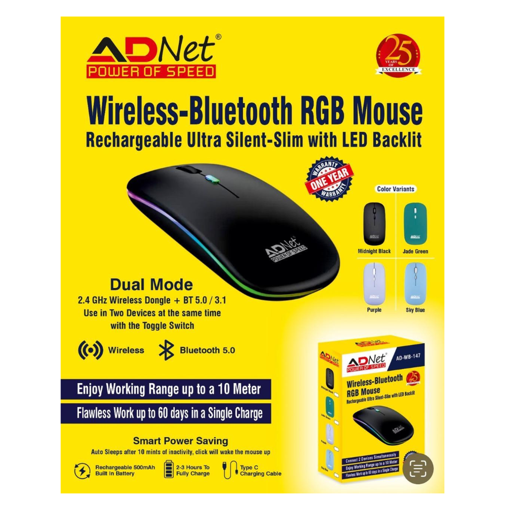 AD NET 2 in 1 Wireless-Bluetooth RGB Mouse | Rechargeable Battery | Upto 2400 DPI | Silent Clicks Wireless Optical Gaming Mouse